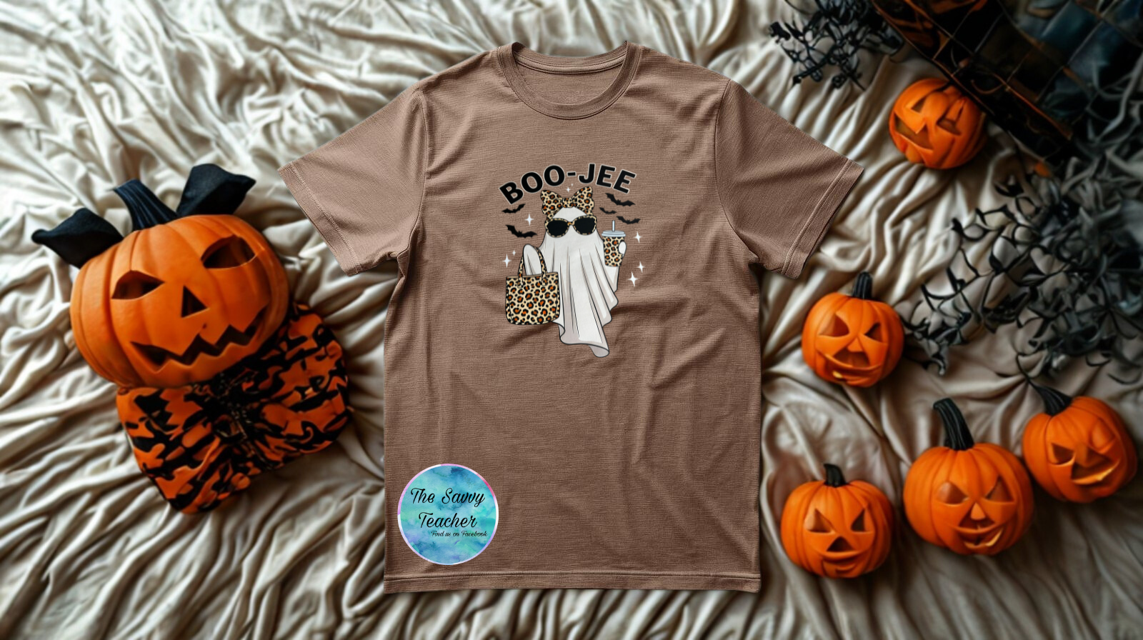Celebrate Halloween with the Boo-Jee heathered brown t-shirt, blending cute charm and boutique style. Featuring a playful ghost and chic cheetah accessories, this fun design adds a whimsical touch to your spooky season wardrobe. Perfect for those who want a stylish yet festive look, this tee balances comfort and trend effortlessly.