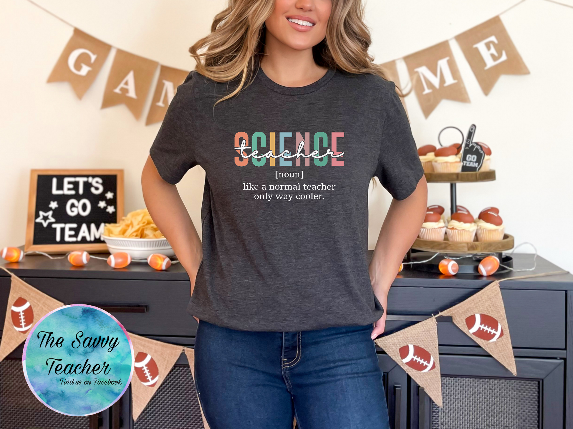 This dark heathered grey Science Teacher Spirit Shirt combines a soft, comfortable fabric with bright, colorful font to celebrate the cool and inspiring role of science educators. Perfect for everyday wear, it showcases your passion for teaching science with style and comfort.