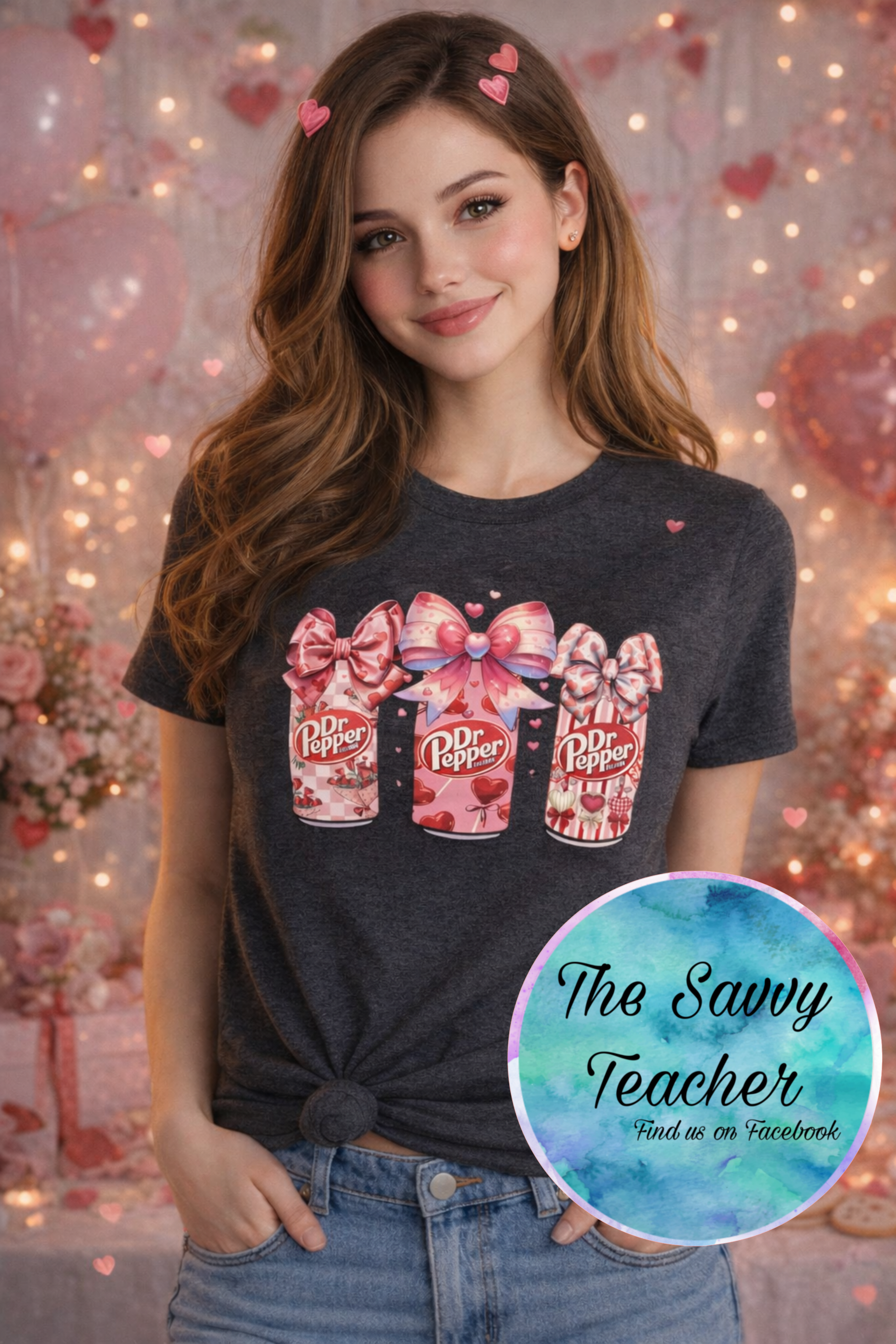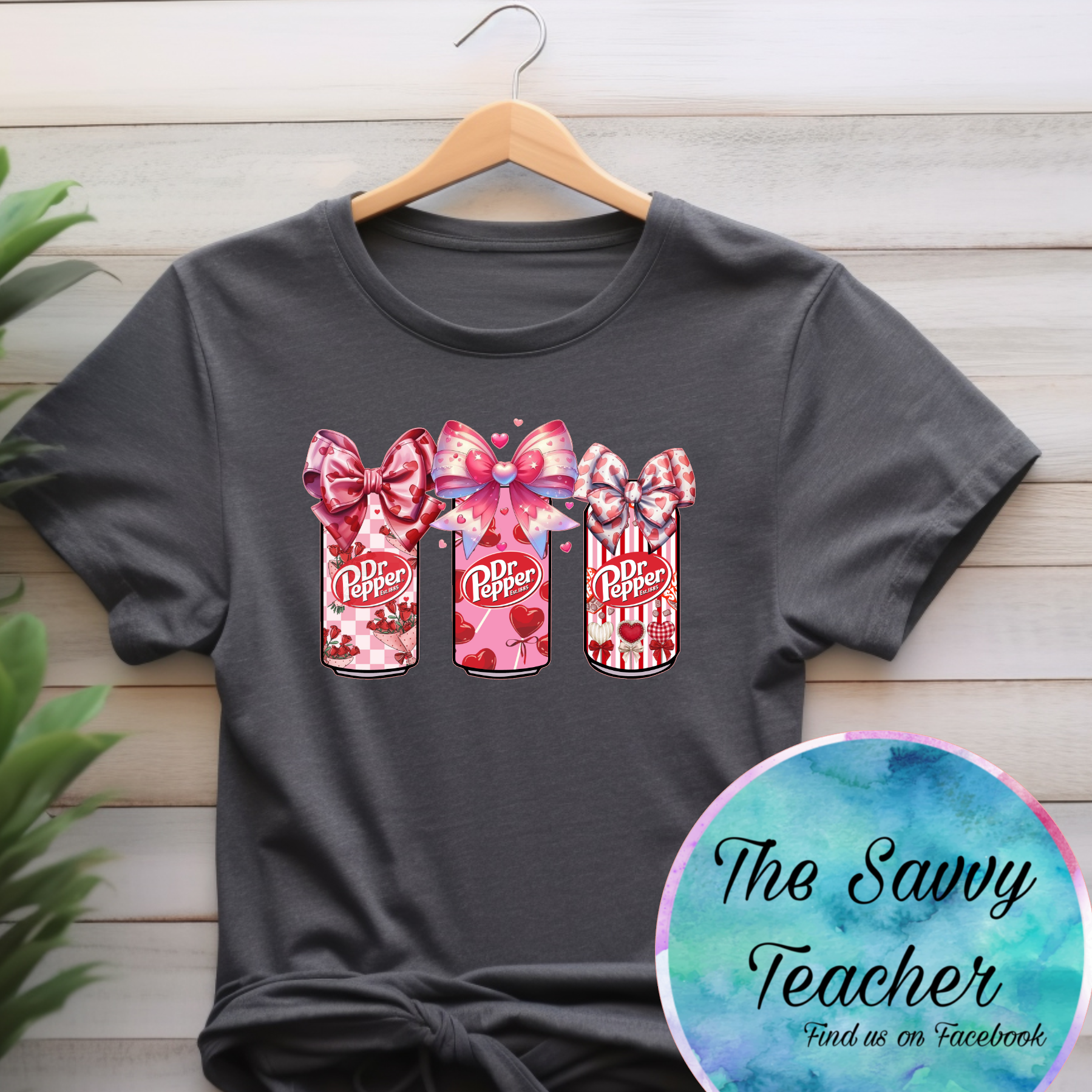 Celebrate your love for Dr. Pepper with this playful heathered grey tee featuring three iconic cans adorned with Valentine hearts and bows. Perfect for fans who wear their soda passion proudly, this fun design combines nostalgic charm with romantic flair. Soft, comfortable, and ready to turn heads—because the best relationships are the ones that fizz.